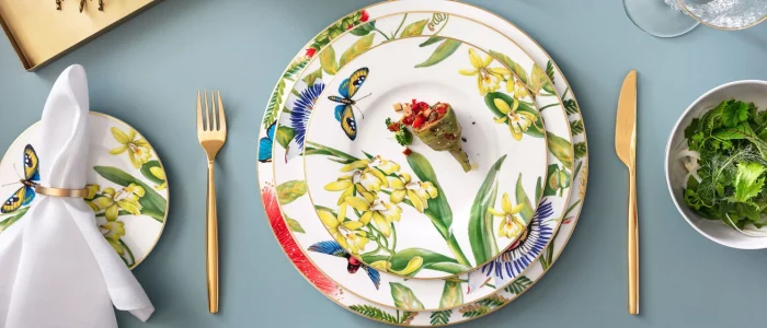 Veselăria atemporală de la Villeroy & Boch Amazonia captivează cu puterea pădurii tropicale și aduce culorile strălucitoare ale orhideelor, colibri și florilor pasiunii la un nivel care îi va încânta pe oamenii pasionați de porțelan extraordinar și măiestria luxoasă.